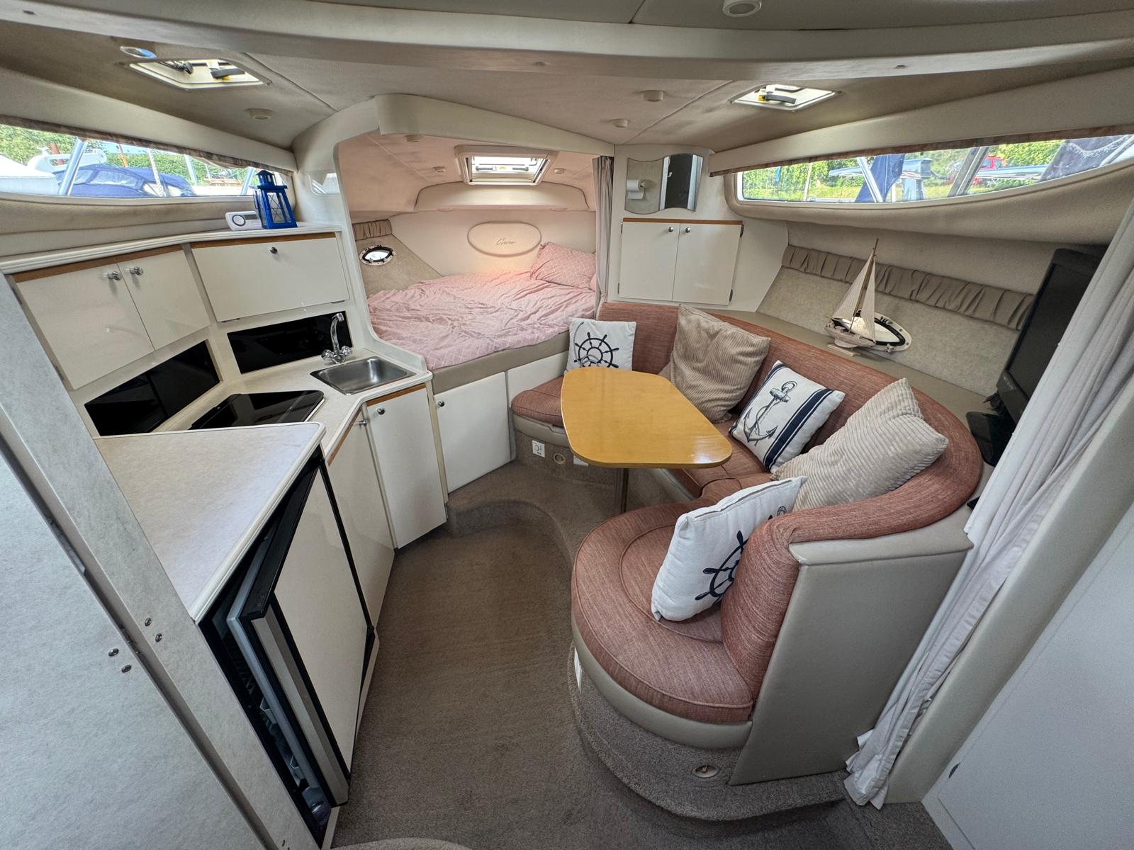 You also have a wet bar on the port side with sink and locker. (Access to the engines is beneath).
